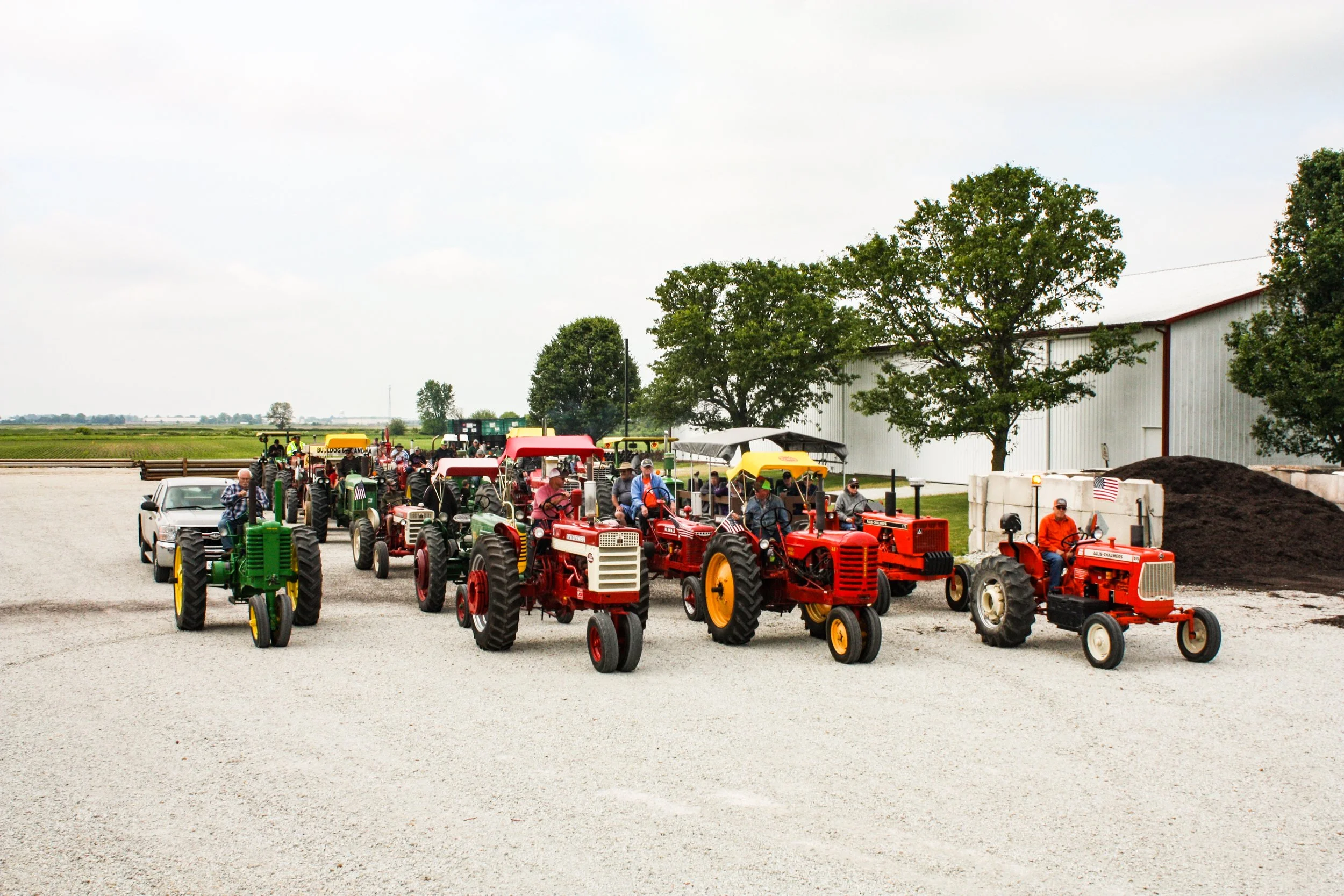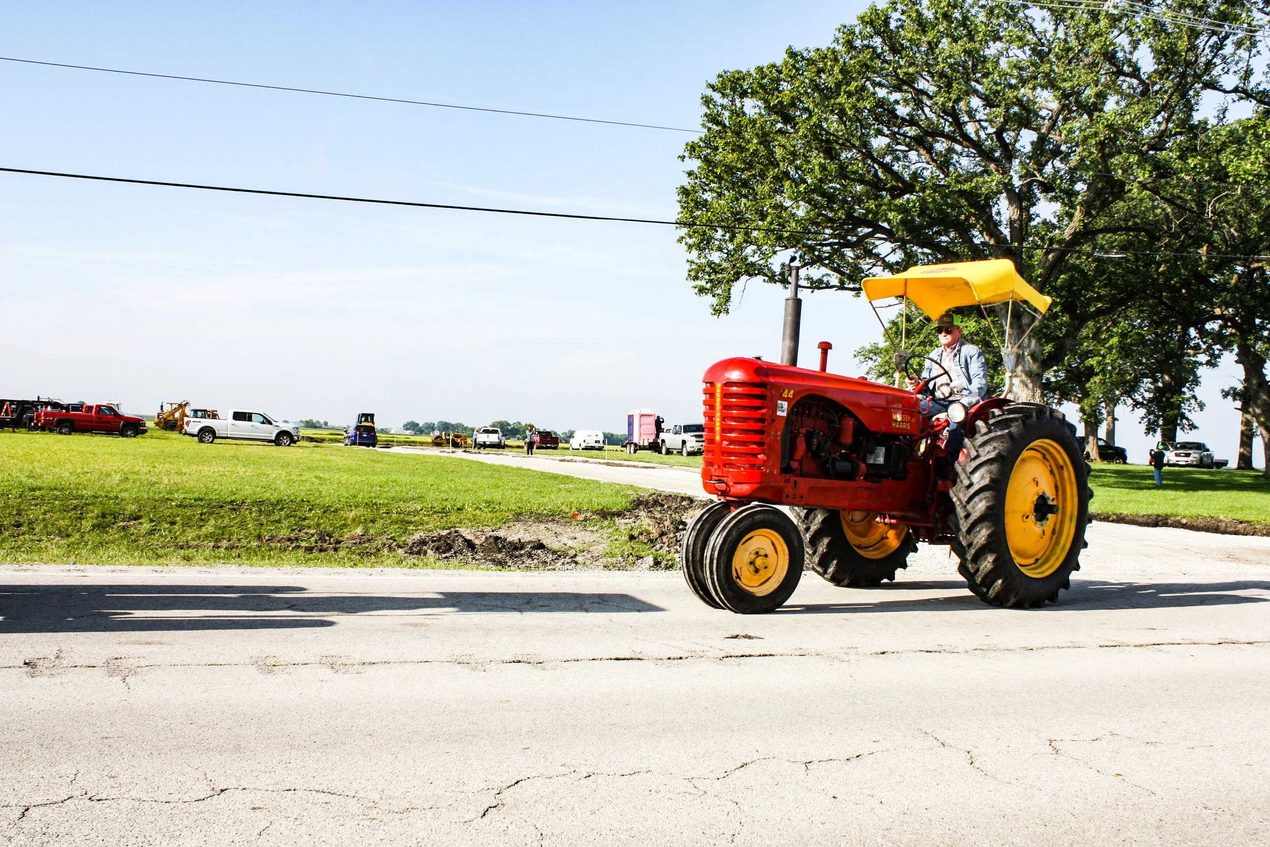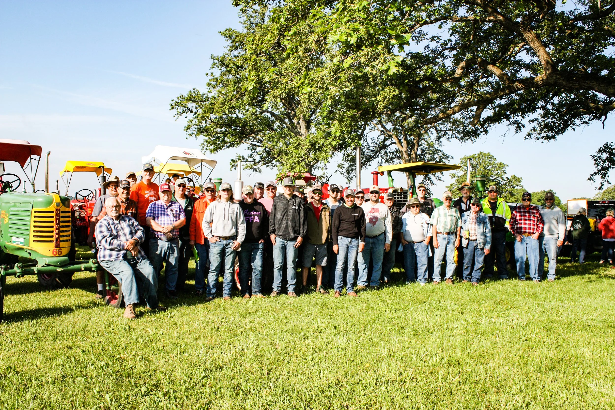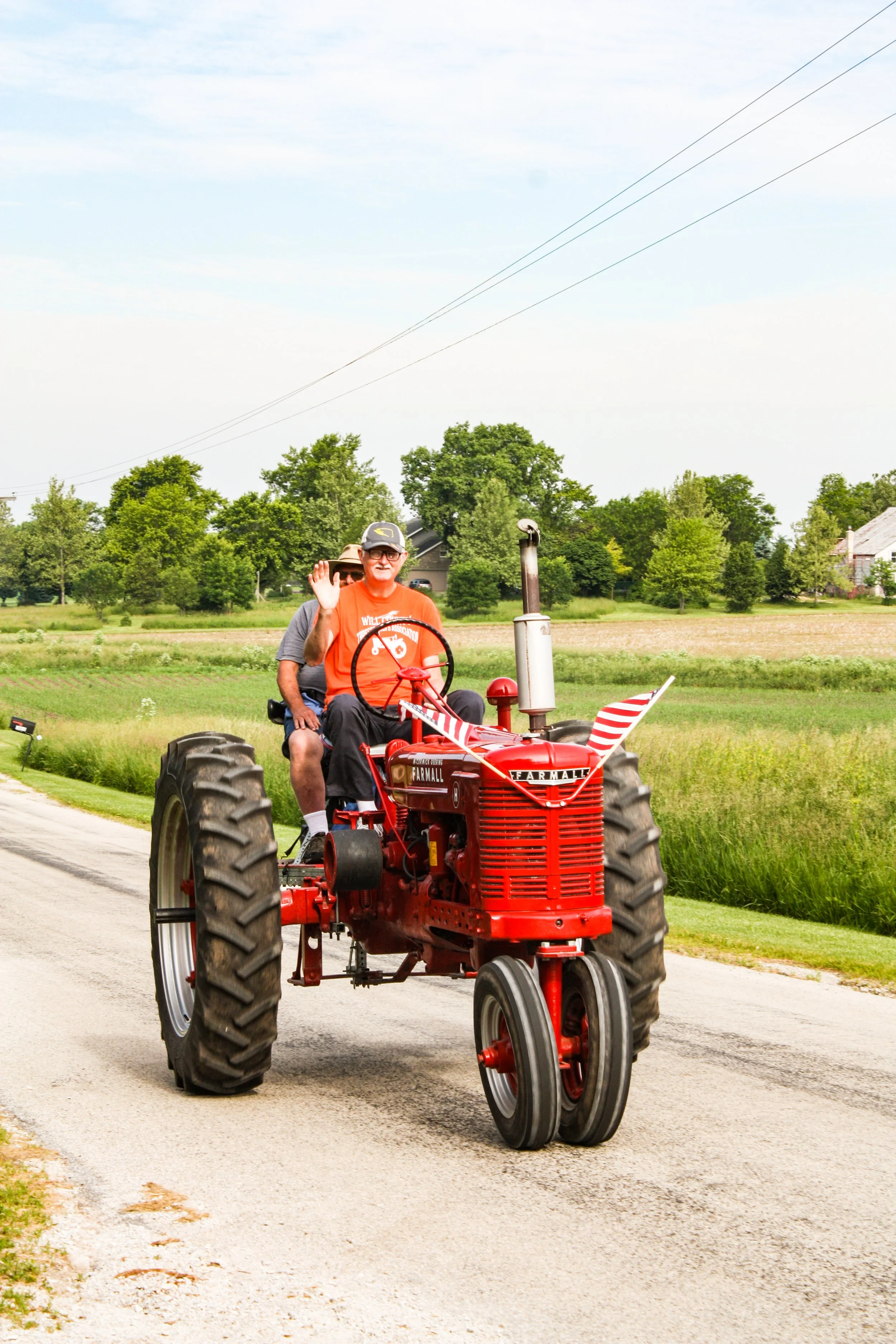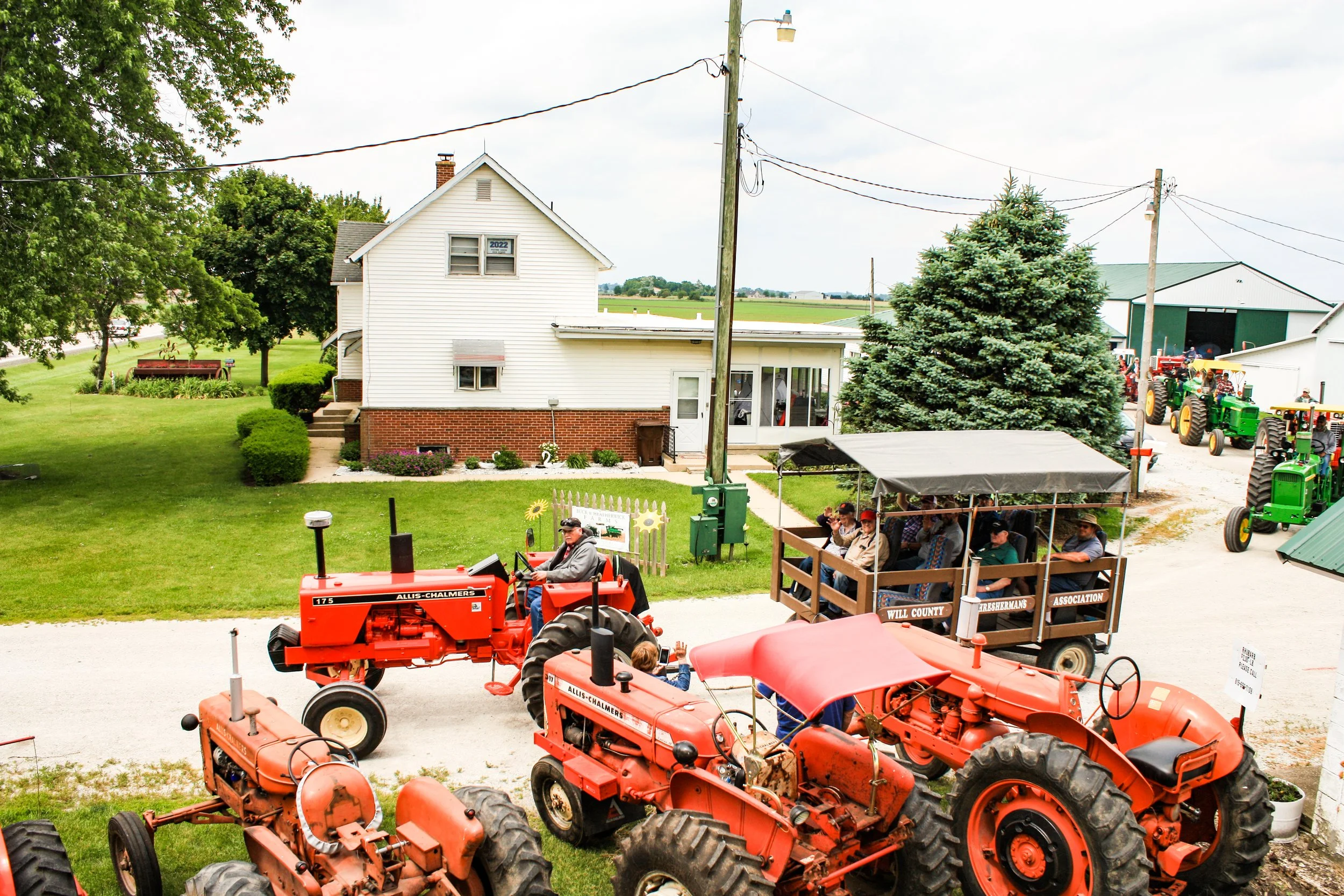 The June 11, 2022 Will County Threshermen’s Association Vintage Tractor Drive started and ended at the WCTA Show Grounds, Steve Spiess Farm in Manhattan, IL near Wilton Center, IL. This year’s drive had about 40 drivers/riders and many helpers/planners. Rest stops were at Jim Morgan Shop (Hupes) and the Grant, Linda, and Lane Heatherwick Farm. Lunch was served by, Between the Buns (Jerry the “Griller”), at the Lee Deutche Grain and Cattle Farm.