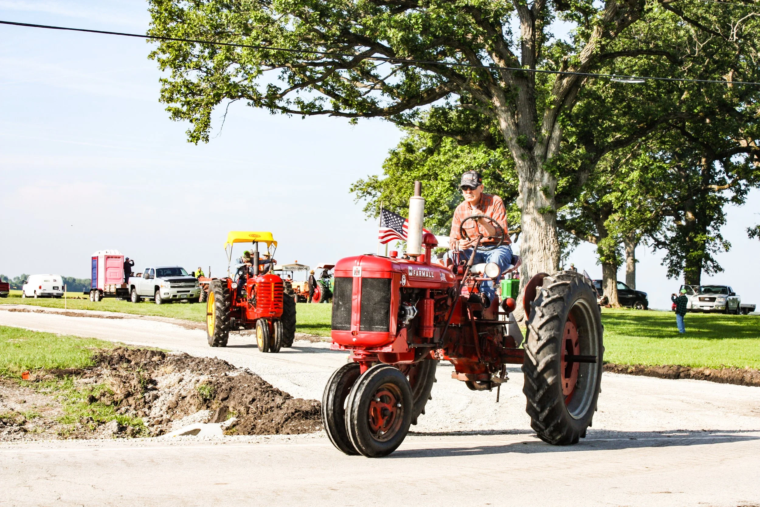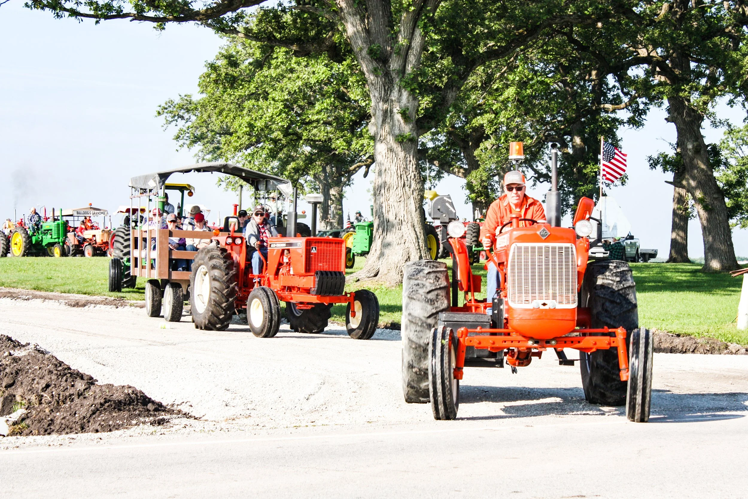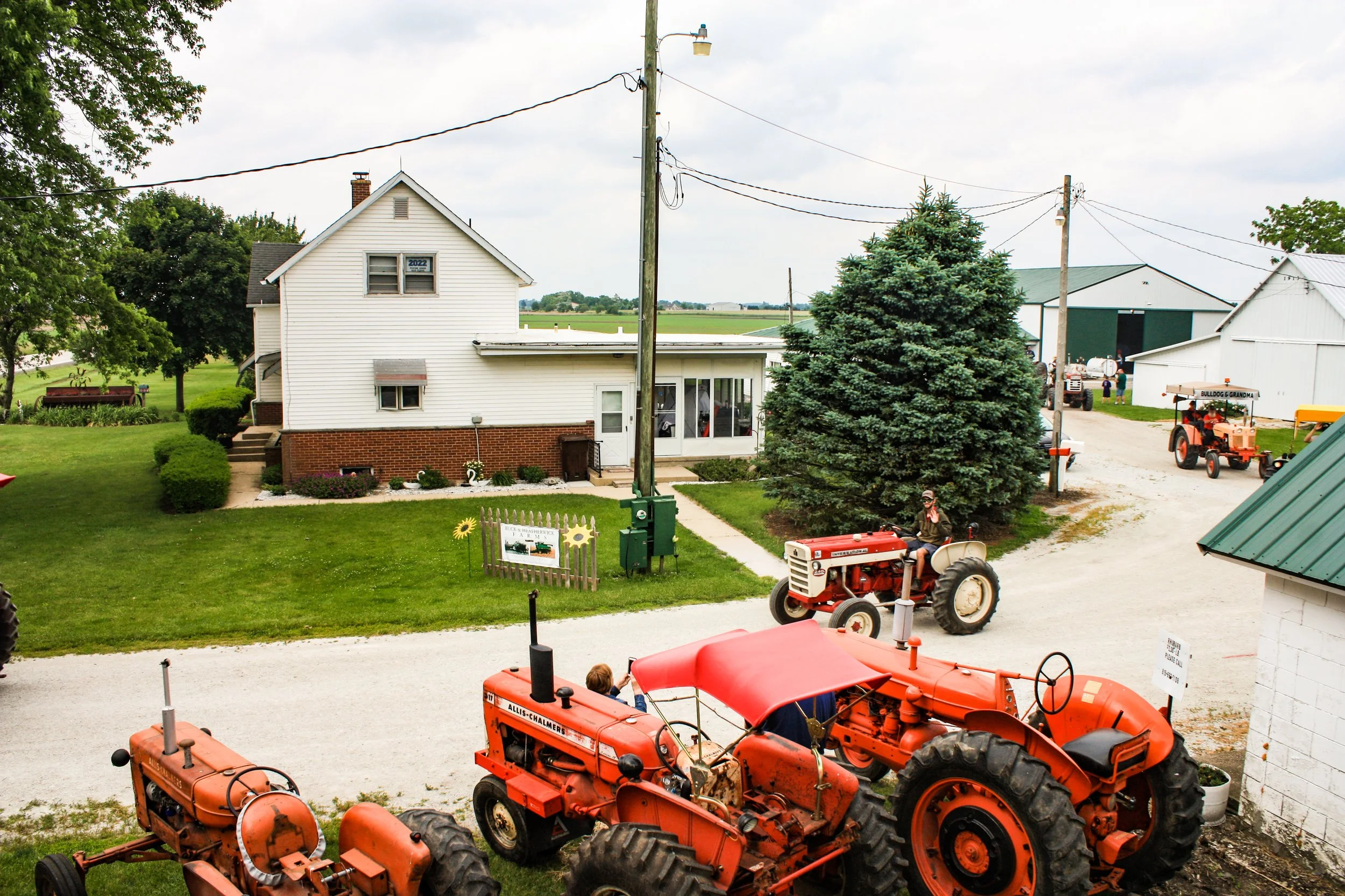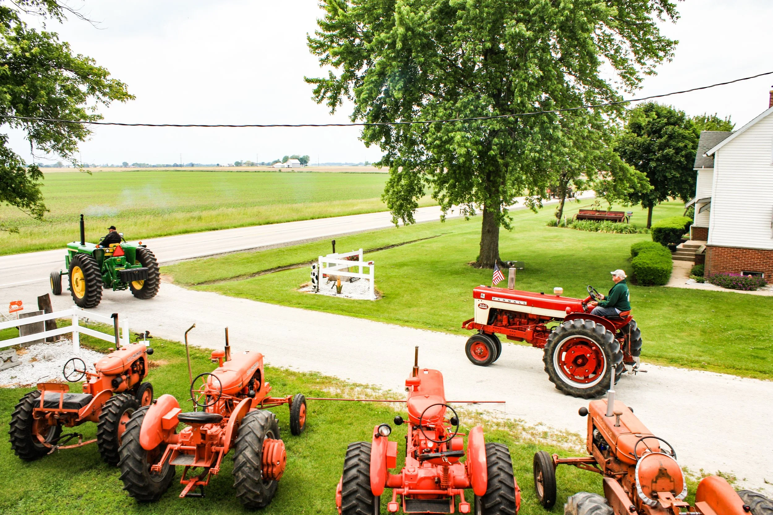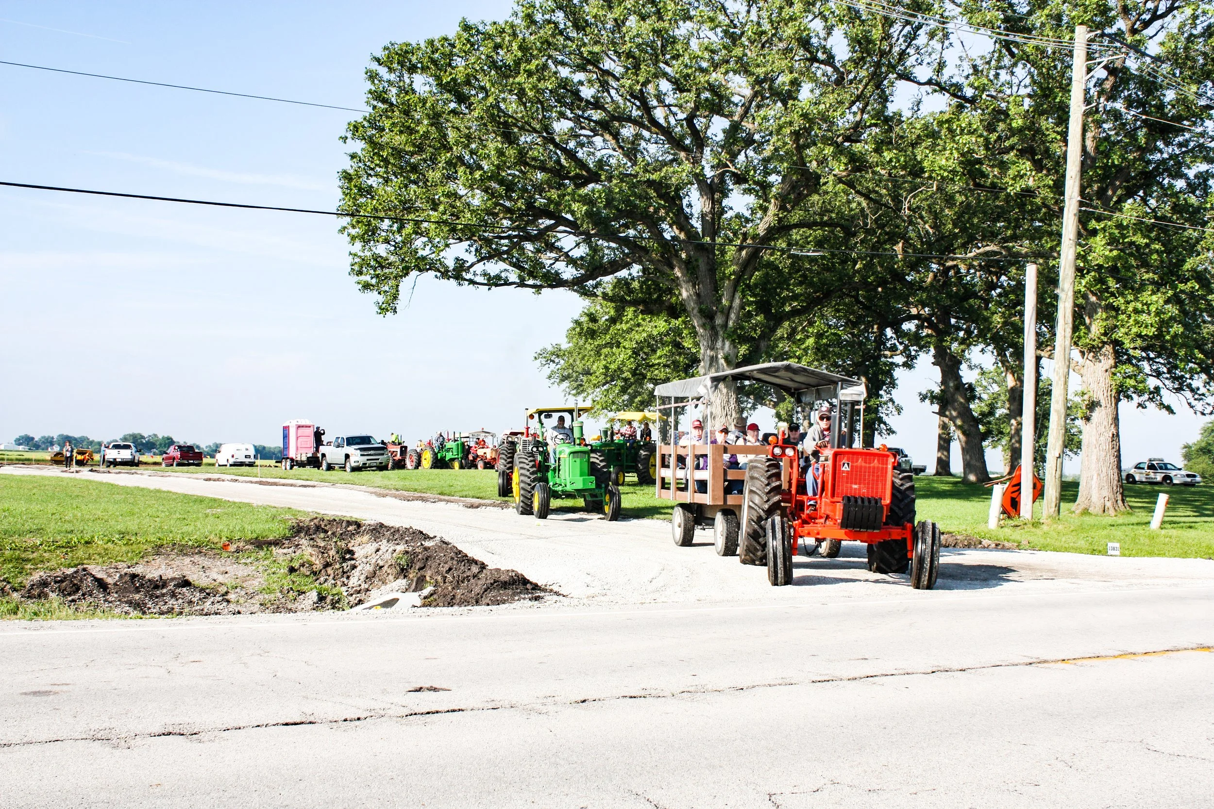 The June 11, 2022 Will County Threshermen’s Association Vintage Tractor Drive started and ended at the WCTA Show Grounds, Steve Spiess Farm in Manhattan, IL near Wilton Center, IL. This year’s drive had about 40 drivers/riders and many helpers/planners. Rest stops were at Jim Morgan Shop (Hupes) and the Grant, Linda, and Lane Heatherwick Farm. Lunch was served by, Between the Buns (Jerry the “Griller”), at the Lee Deutche Grain and Cattle Farm.