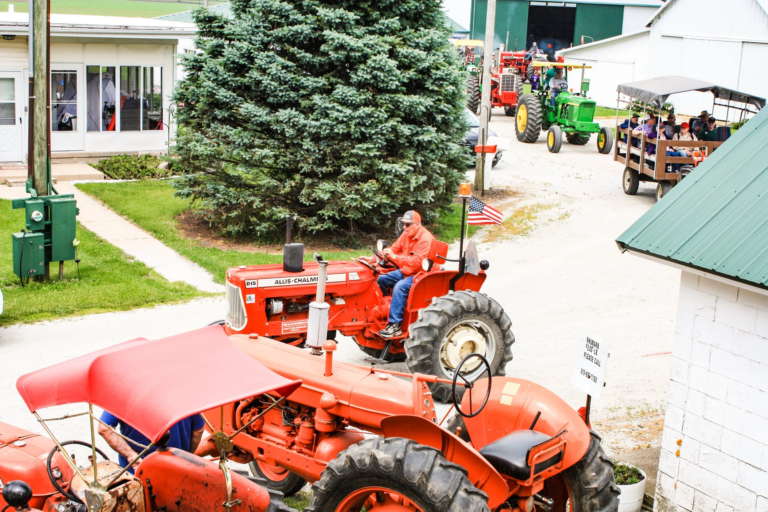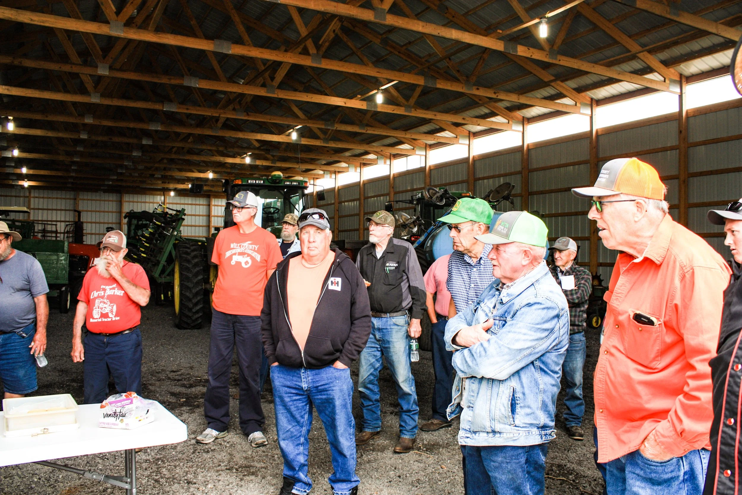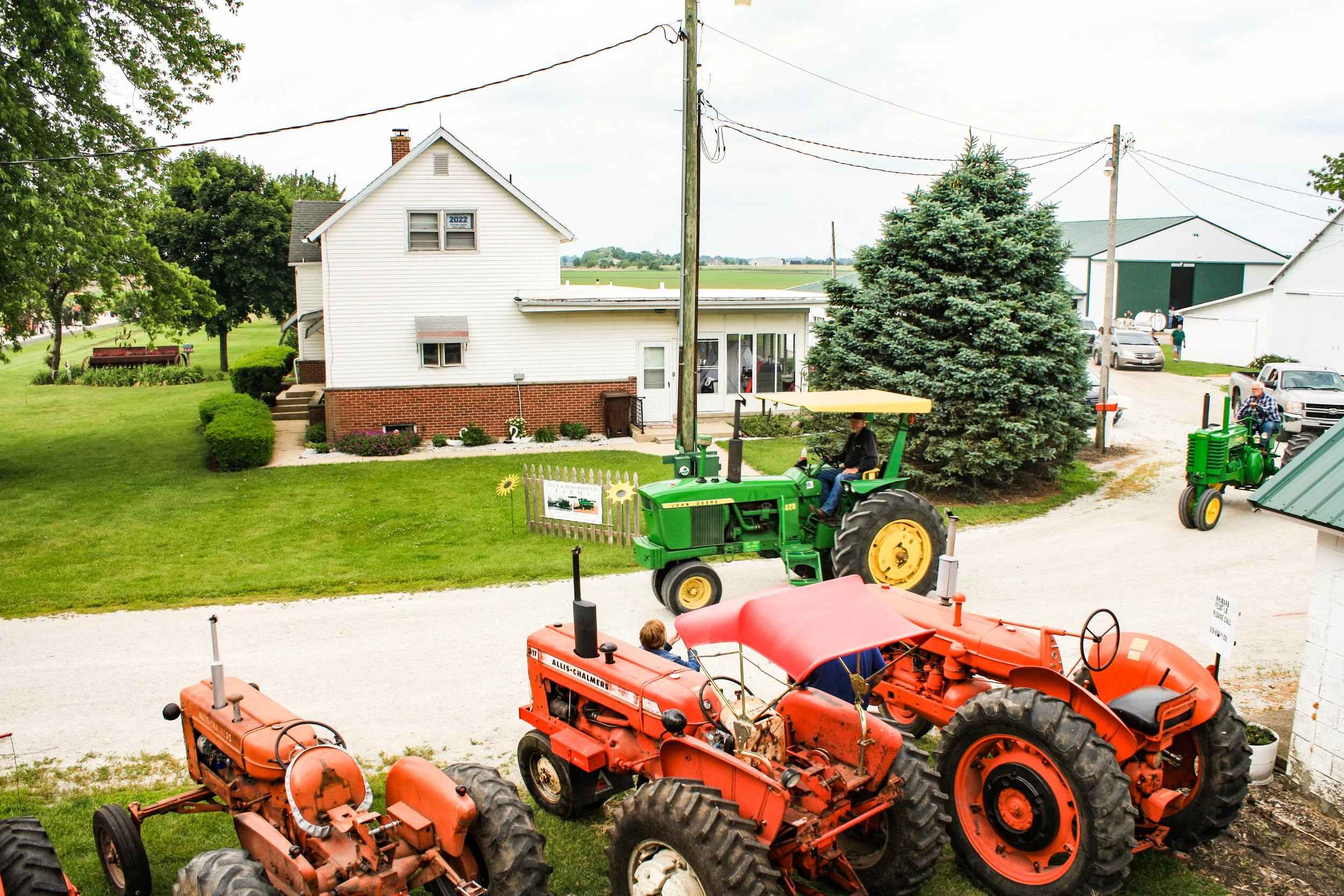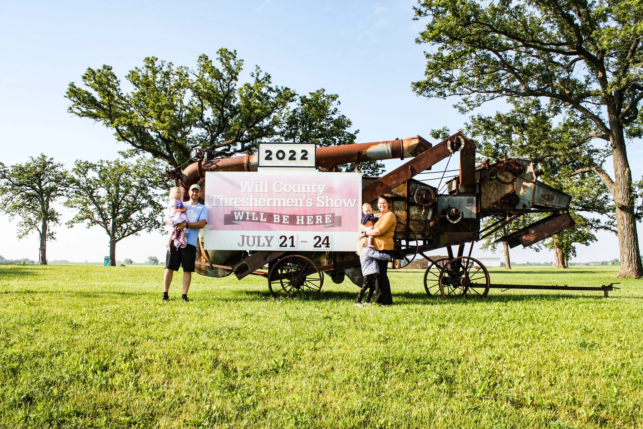 The June 11, 2022 Will County Threshermen’s Association Vintage Tractor Drive started and ended at the WCTA Show Grounds, Steve Spiess Farm in Manhattan, IL near Wilton Center, IL. This year’s drive had about 40 drivers/riders and many helpers/planners. Rest stops were at Jim Morgan Shop (Hupes) and the Grant, Linda, and Lane Heatherwick Farm. Lunch was served by, Between the Buns (Jerry the “Griller”), at the Lee Deutche Grain and Cattle Farm.