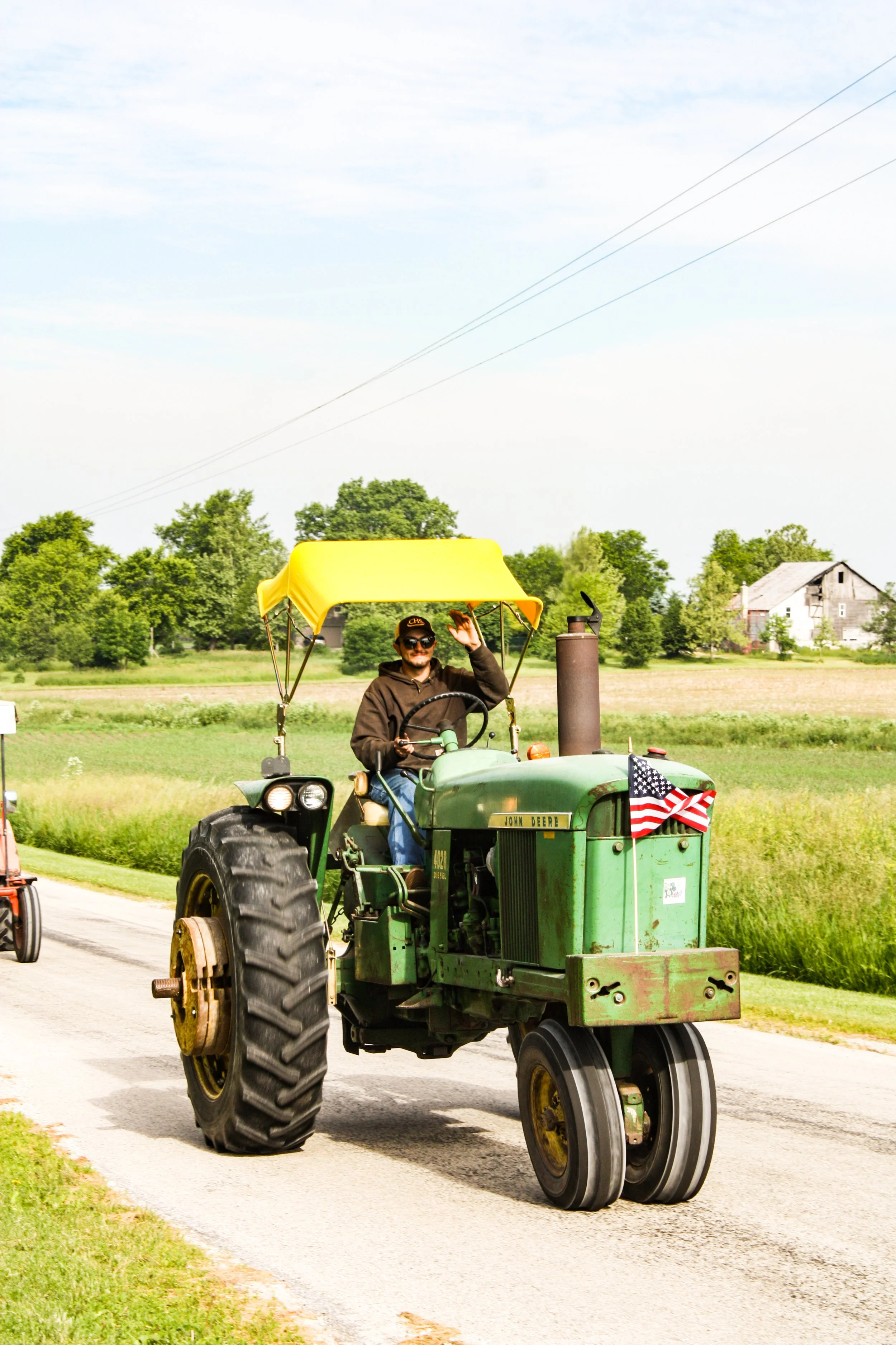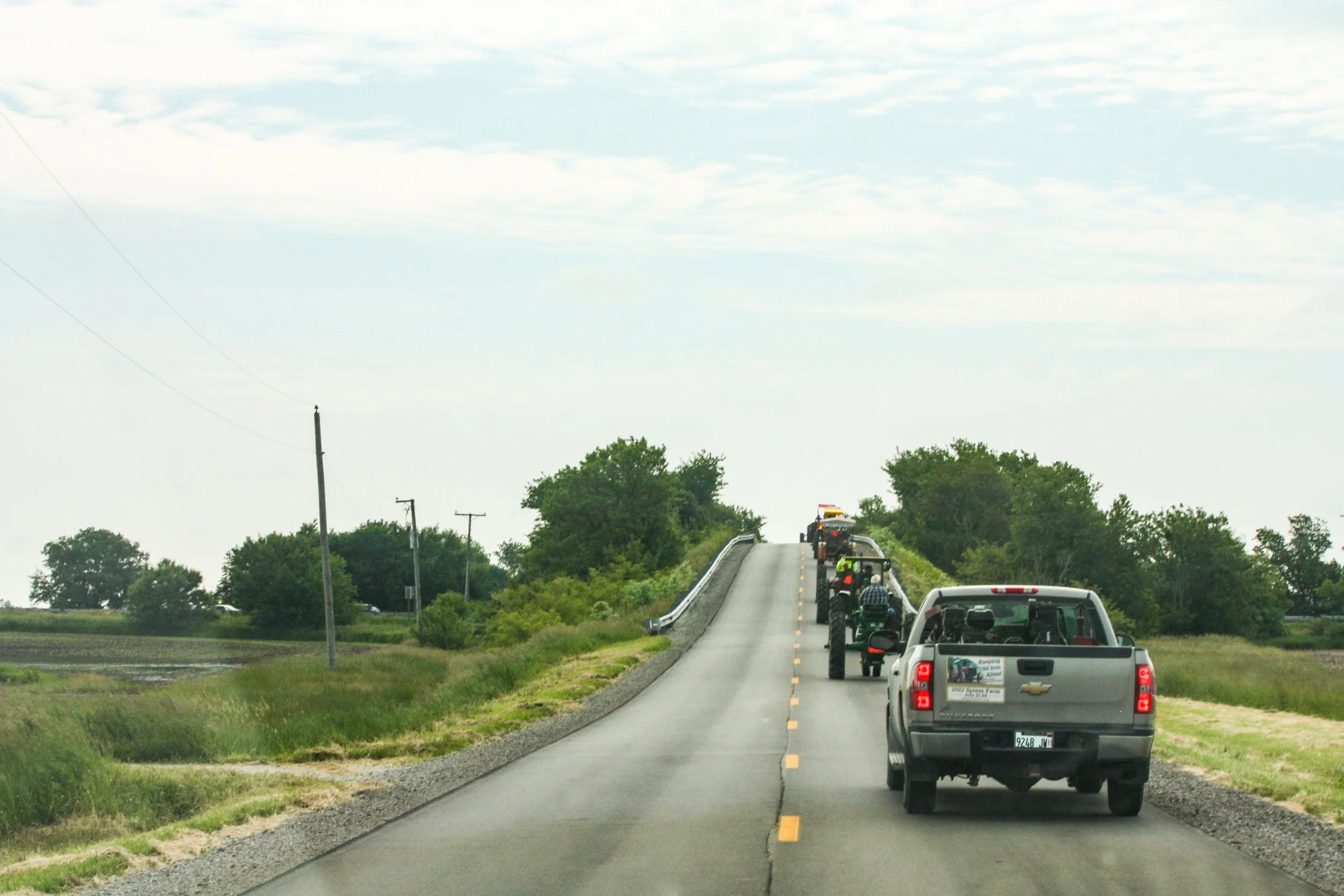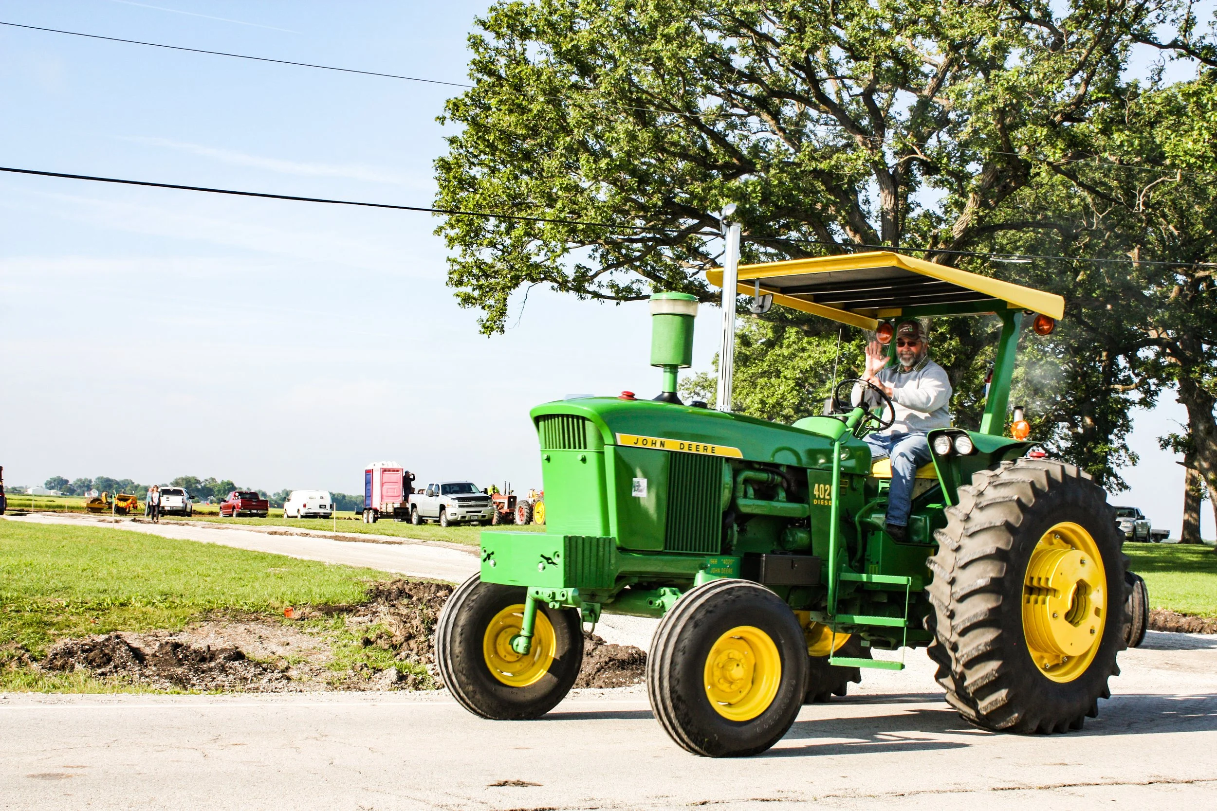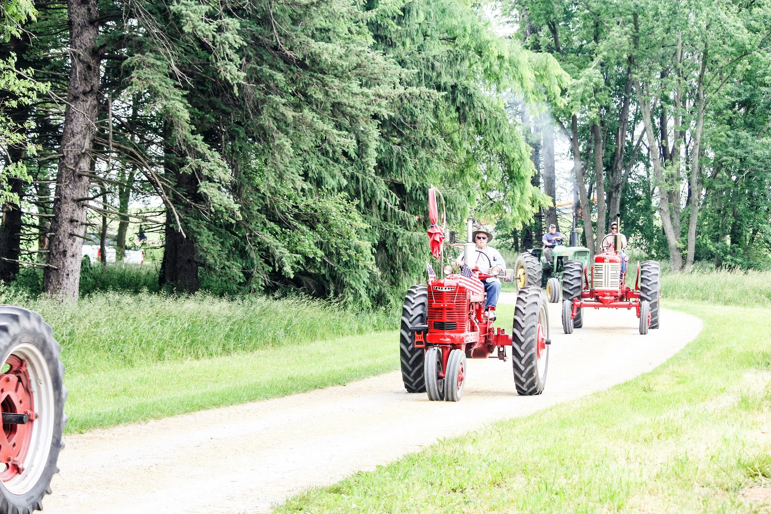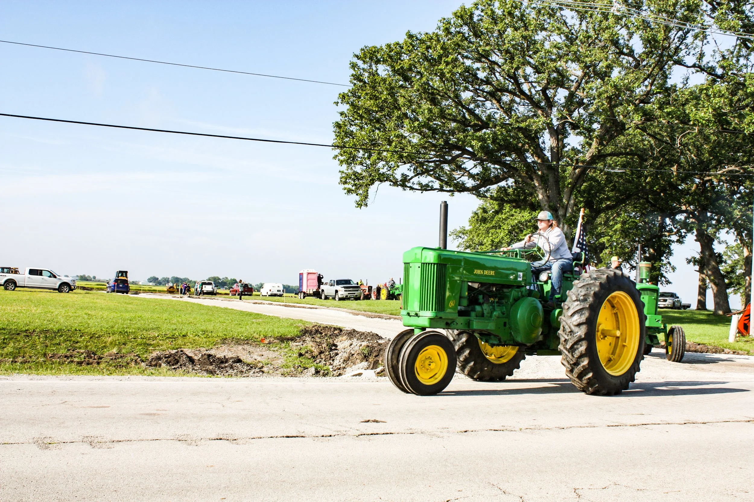 The June 11, 2022 Will County Threshermen’s Association Vintage Tractor Drive started and ended at the WCTA Show Grounds, Steve Spiess Farm in Manhattan, IL near Wilton Center, IL. This year’s drive had about 40 drivers/riders and many helpers/planners. Rest stops were at Jim Morgan Shop (Hupes) and the Grant, Linda, and Lane Heatherwick Farm. Lunch was served by, Between the Buns (Jerry the “Griller”), at the Lee Deutche Grain and Cattle Farm.