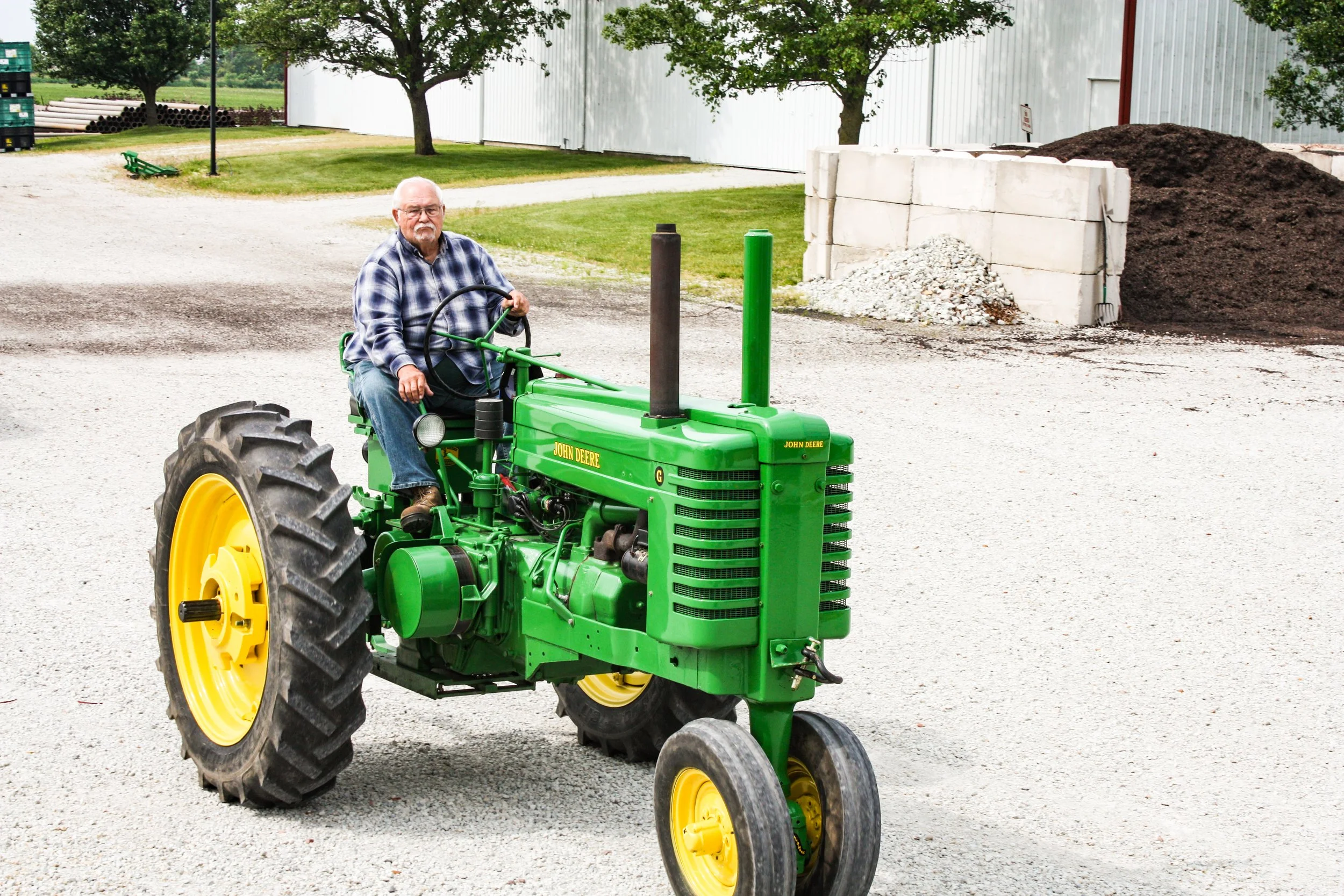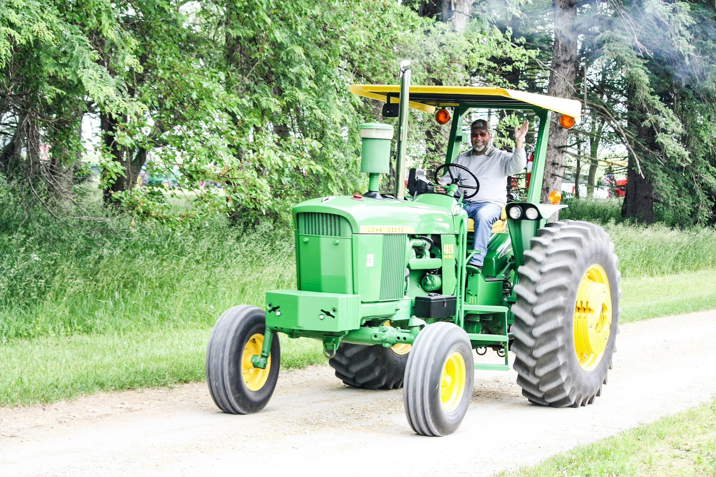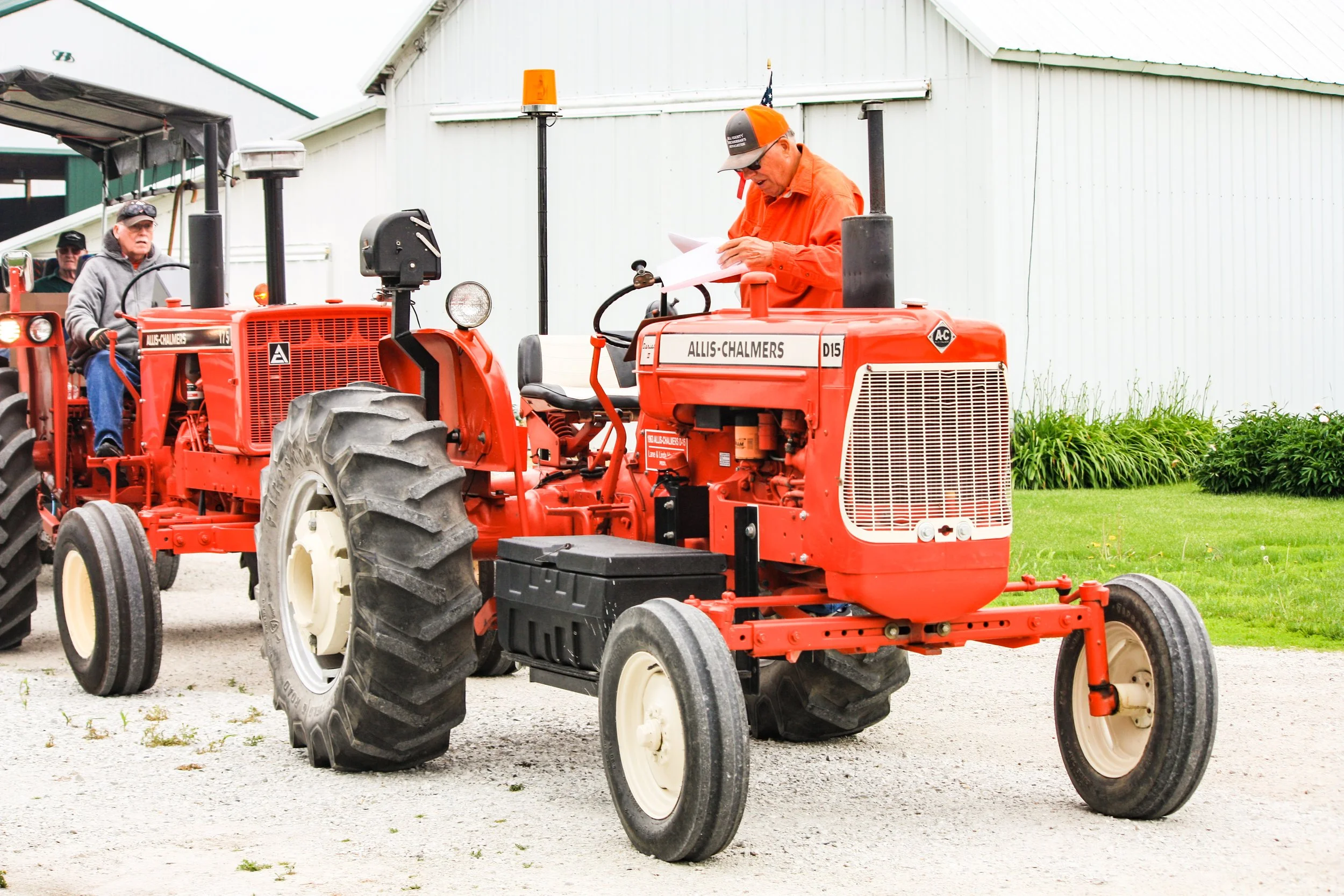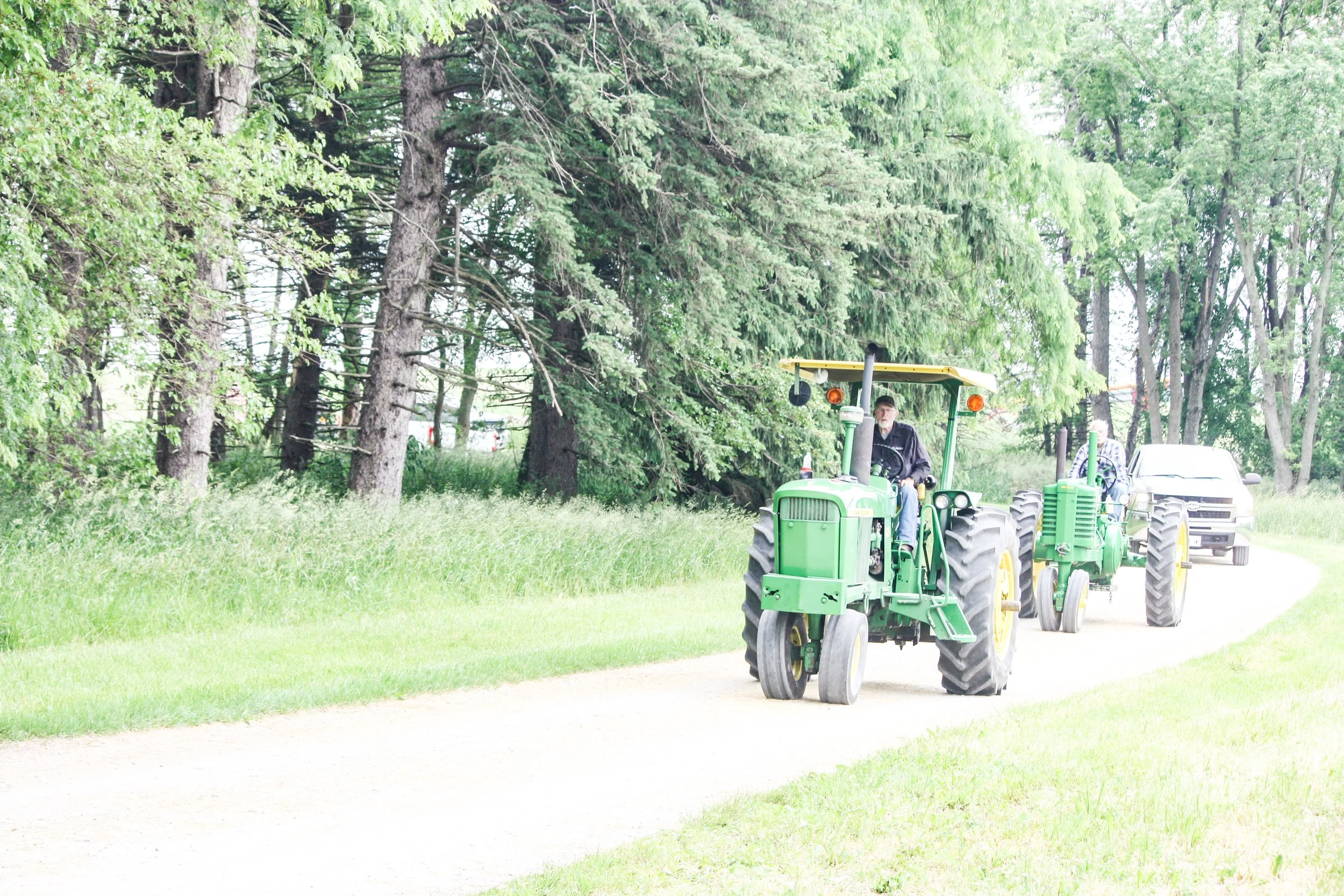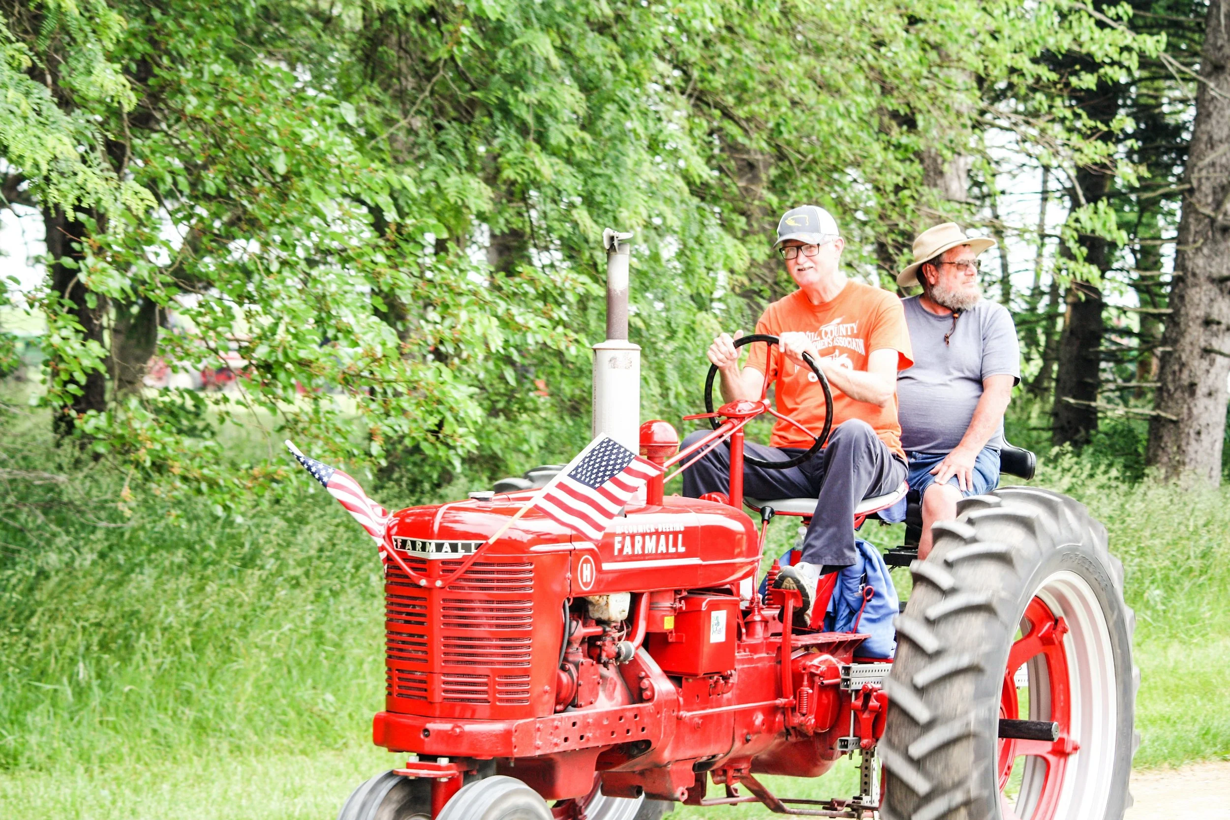 The June 11, 2022 Will County Threshermen’s Association Vintage Tractor Drive started and ended at the WCTA Show Grounds, Steve Spiess Farm in Manhattan, IL near Wilton Center, IL. This year’s drive had about 40 drivers/riders and many helpers/planners. Rest stops were at Jim Morgan Shop (Hupes) and the Grant, Linda, and Lane Heatherwick Farm. Lunch was served by, Between the Buns (Jerry the “Griller”), at the Lee Deutche Grain and Cattle Farm.