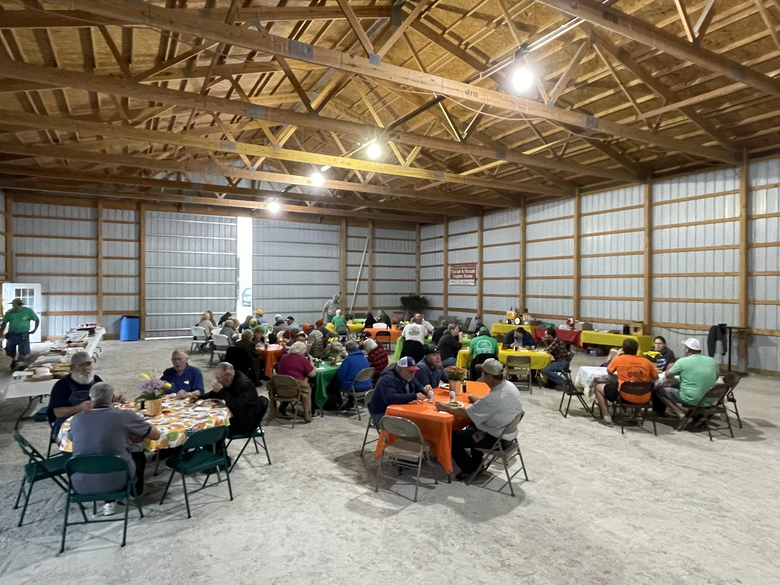 We had 50 plus people present and enjoyed visiting with each other in the dry confines of the shed.