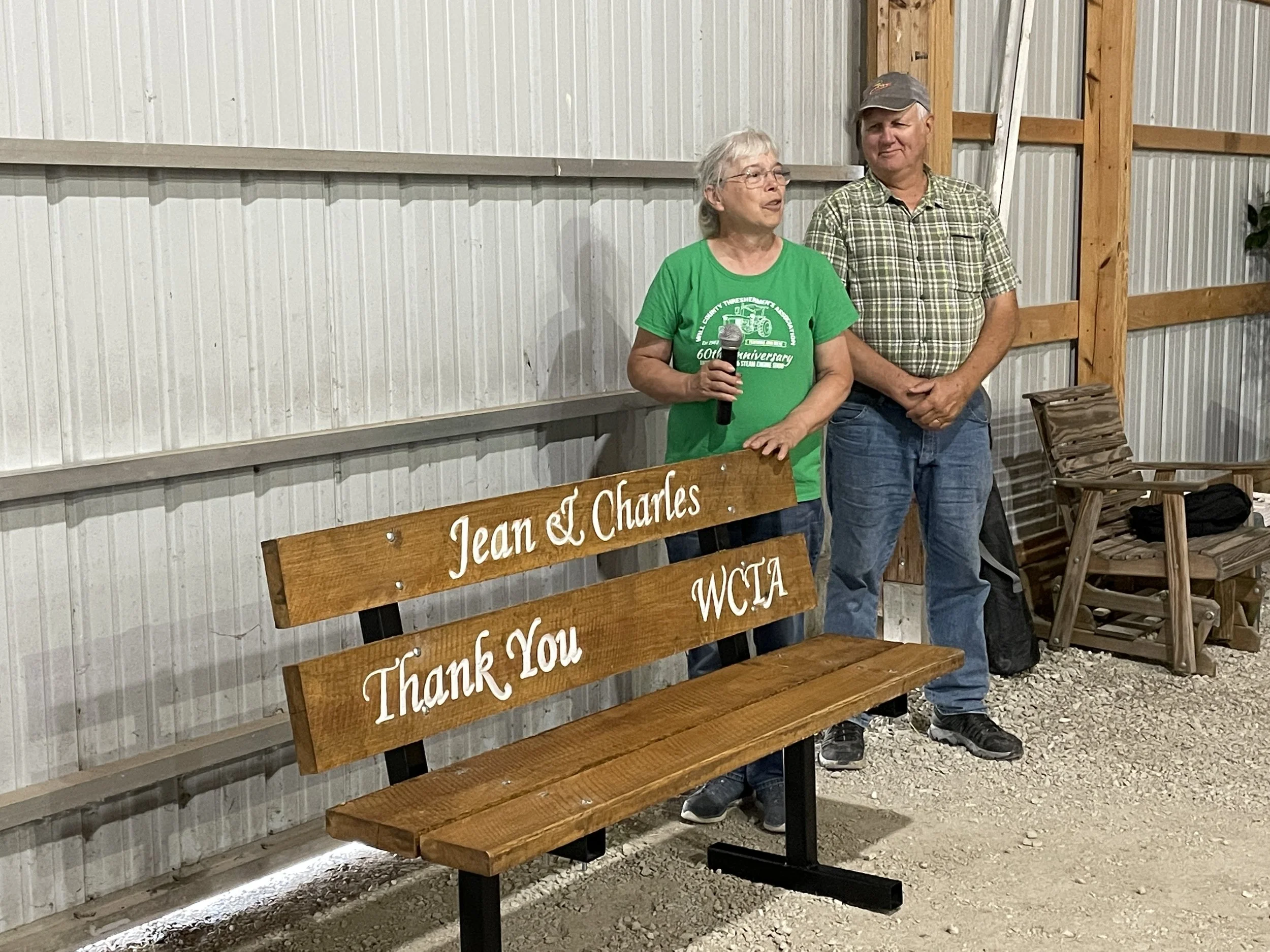 Since Charlie & Jean were unable to enjoy their ride in the Parade of Power, as King and Queen, the club presented them with a plaque honoring them, and also presented them with a garden bench, made from some of the planks sawn on our mill, at this year’s show. They both thanked everyone for that beautiful gift.
