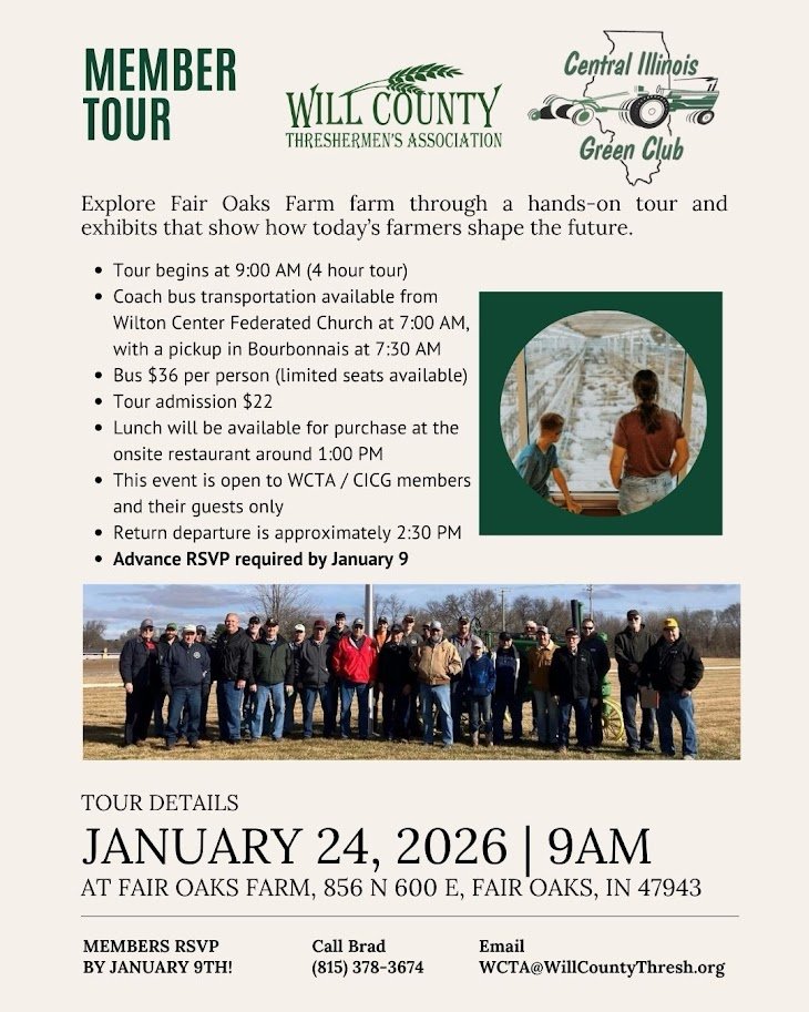 The Central Illinois Green Club is interested in a joint tour with us again this winter. Brad spoke to Fair Oaks farm in Indiana about a group tour of their educational facility on cows and pigs. The date options were January 24, January 31, or February 7. January 21 was chosen with the other dates as possibilities for weather delays. The cost per person on the tour will be $22, and the tour lasts approximately 4 hours. Brad also mentioned that he and Craig are looking into a bus for travel there and back instead of everyone driving themselves. More information will follow.